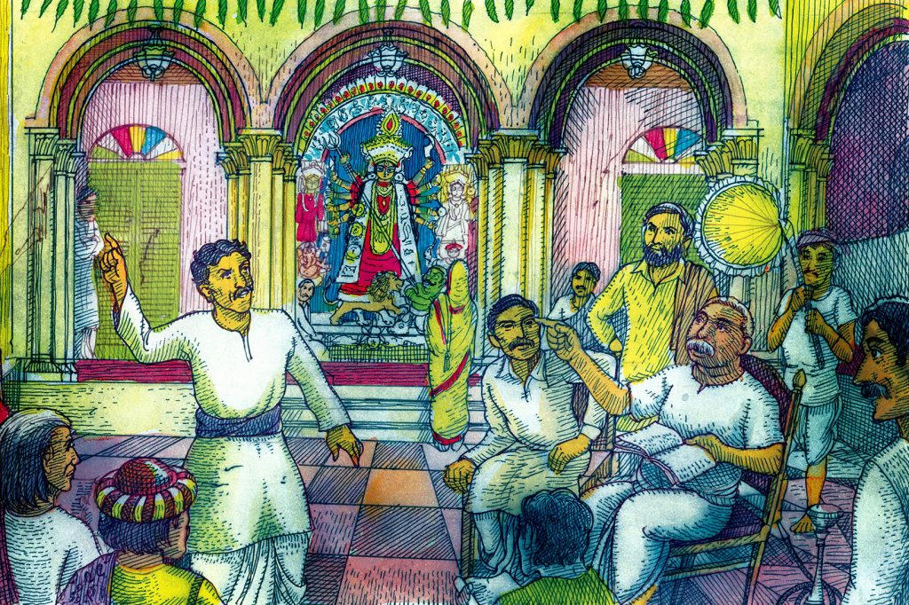While the English left Sutanuti for Kalikata and Govindapore the native, wealthy Bengalis settled in this part by the Holy Ganges; demographically Bagbazar is primarily a neighbourhood of upper-caste Hindus. Hence, we find the locality names like Mukhujjyapara, Gosainpara, Bosepara, Rajballavpara instead of Sankibhanga, Kasaitola or Murgihata as was the case in the brown town which had mixed population. There were a few families belonging to the lower strata of the caste system, wholly dependent on these wealthy families for a livelihood. Since the Hindus drank milk there is a Goalapara and a few families of fishermen folk in Jeliapara to supply fish, a delicacy which the upper caste preferred to mutton, observed Kironchandra Dutta who chronicled the history of Bagbazar.