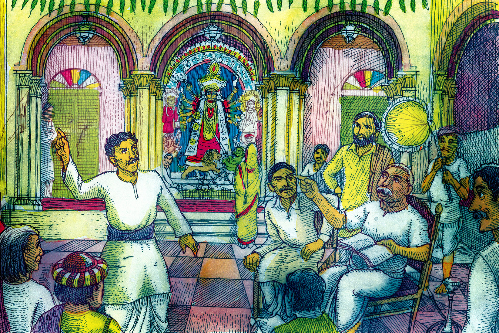 Bagbazar is also known for its Durga Puja. It was celebrated for the first time at Sarkarbari, at the crossing of Nebubagan Lane and Bagbazar Street; it was named as “Nebubagan Baroyari Durga-Puja”. After four years it was shifted to the crossing of Bagbazar Street and Pashupati Bose Lane. Next year it was held at Kantapukur and in 1927 it took place at the Bagbazar Kali-temple. In 1926 social worker, Nagendra Nath Ghoshal along with other well-known people took initiative to give shape to Bagbazar Sarbojanin Durgotsav Committee. In 1930, Durgacharan Bandyopadhyay, an alderman at Calcutta Municipal Corporation was elected as president and the exhibition held during Puja reflected the ideals of Swadeshi movement. Bandyopadhyay requested the Mayor of Calcutta, Subhash Chandra Bose for permission to use a metal-yard belonging to CMC’s road-repair department as the venue of the Puja which was immediately granted. The Puja still retains that old Calcutta charm.