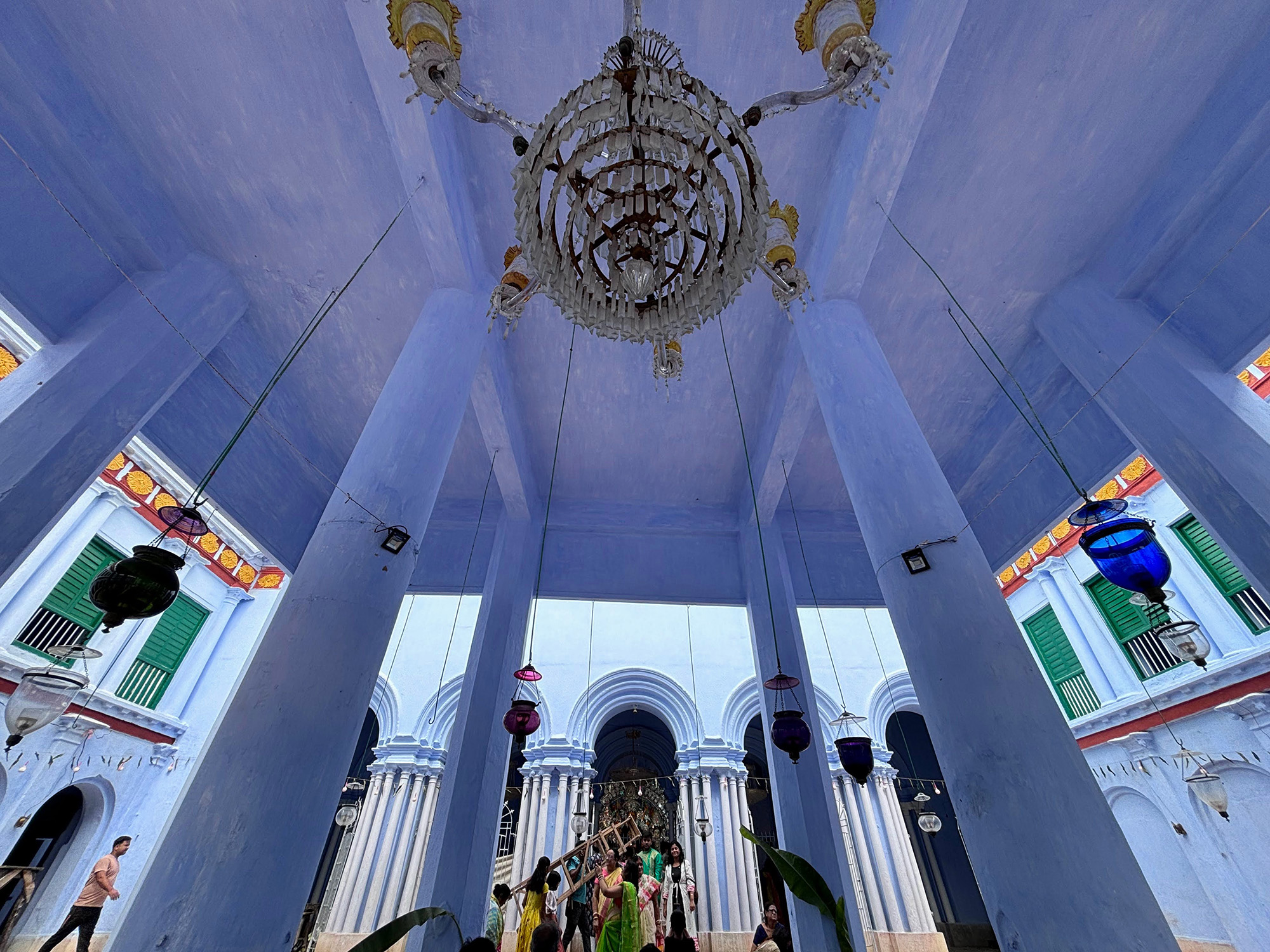 All the rituals and practices of the Boro Taraf puja are conducted here at Chhoto Taraf Puja, except that chandeliers at Natmandir are lighted by electricity.