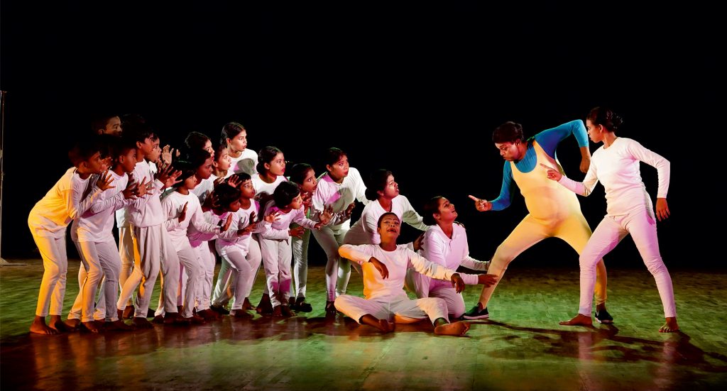 From Howrah district, students of Baksara High School presented “Lobhe Paap, Paape Mrityu” (Greed Leads to Sin, Sin to Death) — a mime adaptation inspired by the Arabian Nights tale of Ali Baba and the Forty Thieves. Debashis Poddar, as Kasim, and Pallabi De, as the Leader of the Thieves, delivered memorable performances, supported by Gagan, Abhirup, Anish, Manik, Prasenjit, Sandeep, Sujan, Mainak, Sujit, Ayush, Jeet, Manish, Shambhu, Inos, and Neelakash.