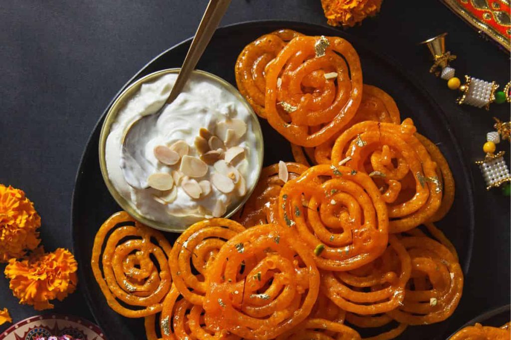 Jalebi: A popular sweet made of besan and dipped in sugary syrup.